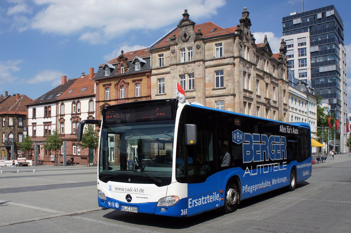 Stadtbus Kaiserslautern: Mercedes-Benz Citaro Facelift der SWK - Stadtwerke Kaiserslautern GmbH, aufgenommen im August 2019 am Hauptbahnhof in Kaiserslautern.