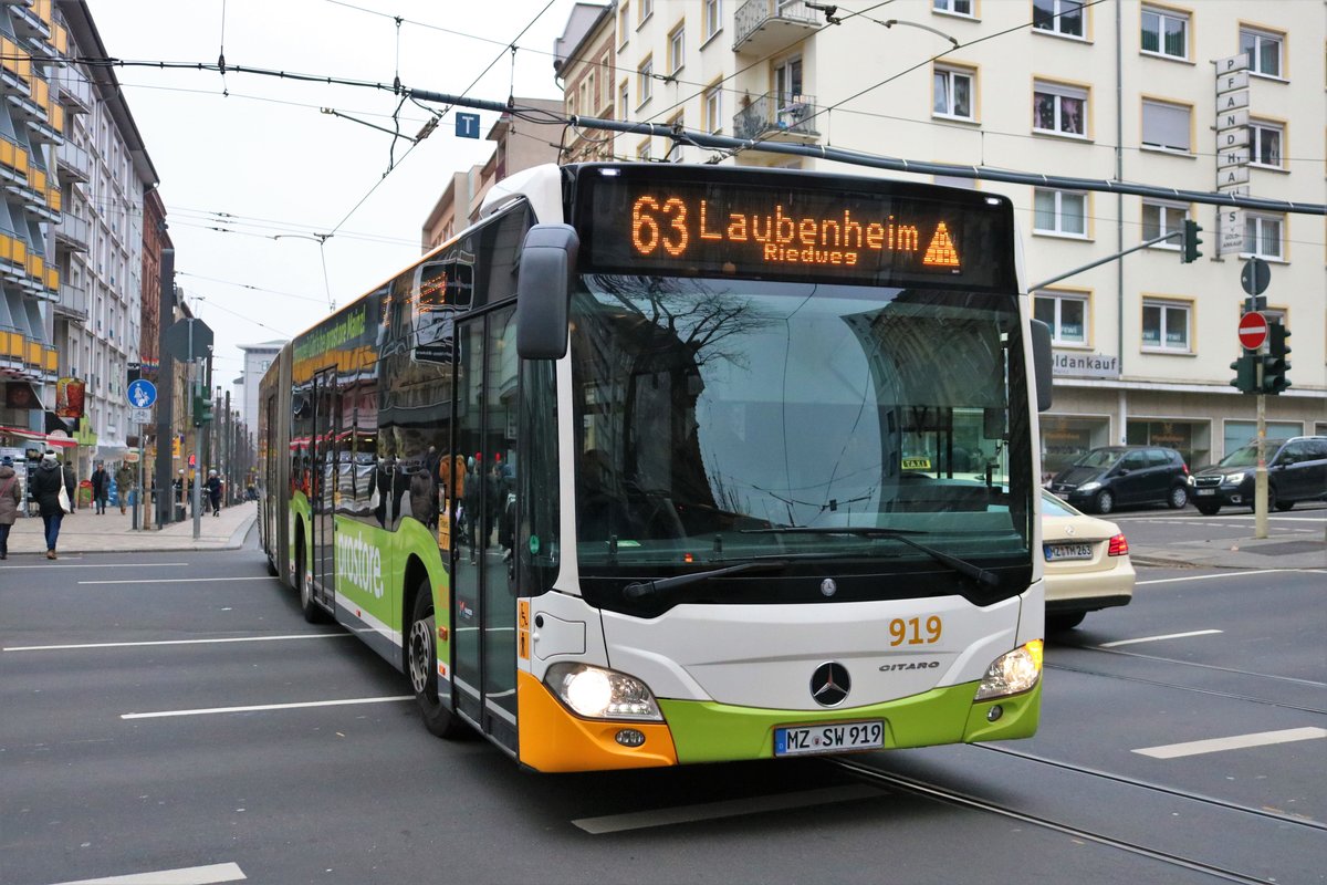MVG Mercedes Benz Citaro 2 G Wagen 919 am 28.12.18 in Mainz Hbf