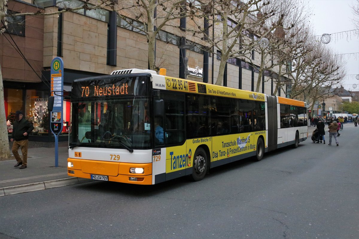 MVG MAN Lions der 2. Generation Wagen 729 am 28.12.18 in Mainz Höfchen