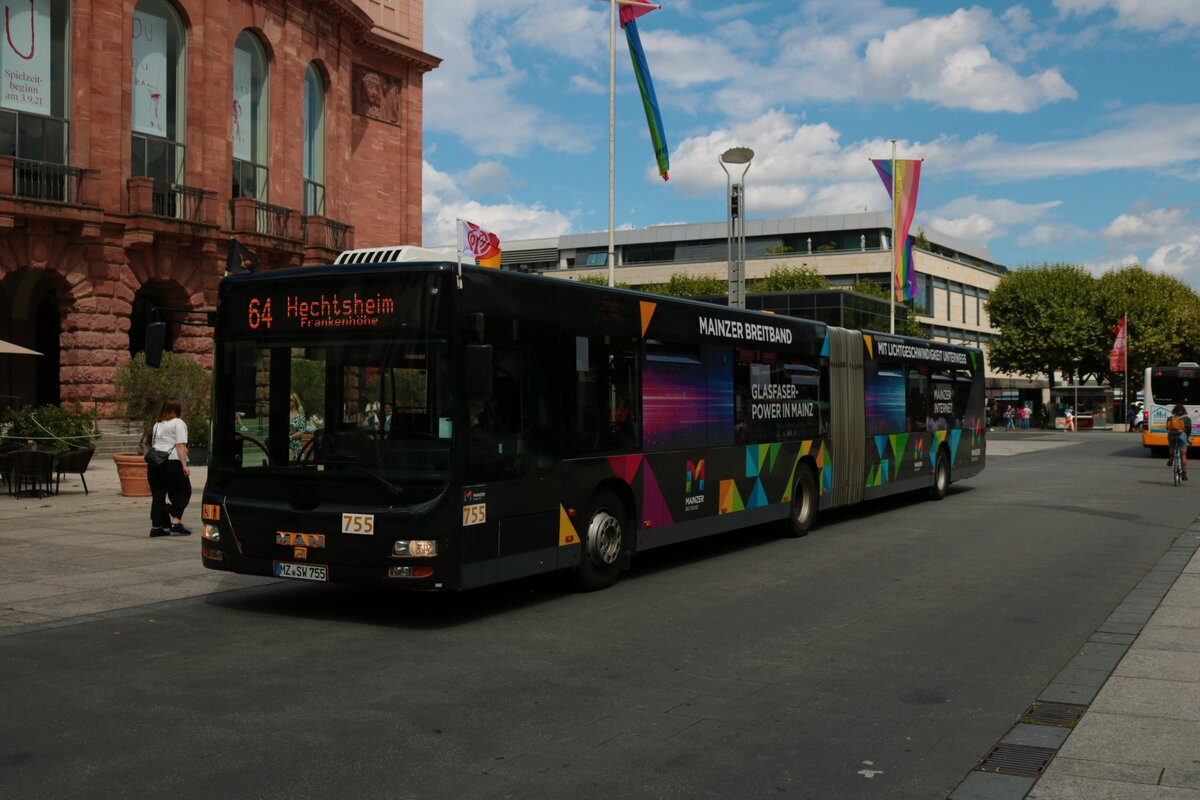 Mainzer Mobilität MAN Lions City G Wagen 755 am 10.08.21 am Höfchen