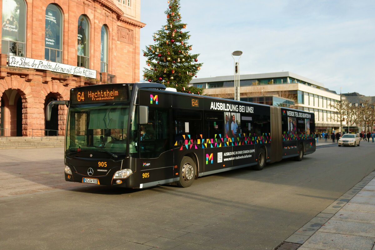 Mainzer Mobilität Mercedes Benz Citaro 2 G Wagen 905 am 31.12.22 am Höfchen in der Innenstadt