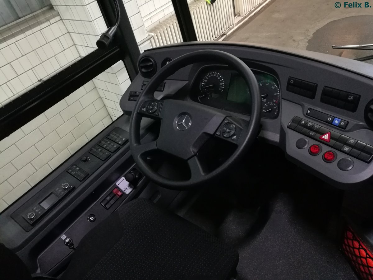 Der Fahrerplatz eines Mercedes Citaro III der Neubrandenburger Verkehrsbetriebe in Neubrandenburg am 27.01.2017