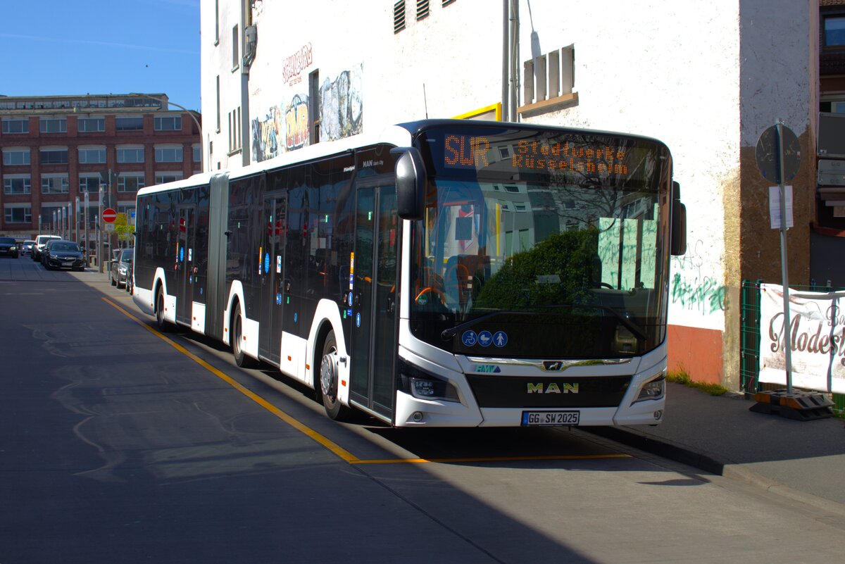 Stadtwerke Rüsselsheim MAN Lions City G am 12.04.25 am Bahnhof