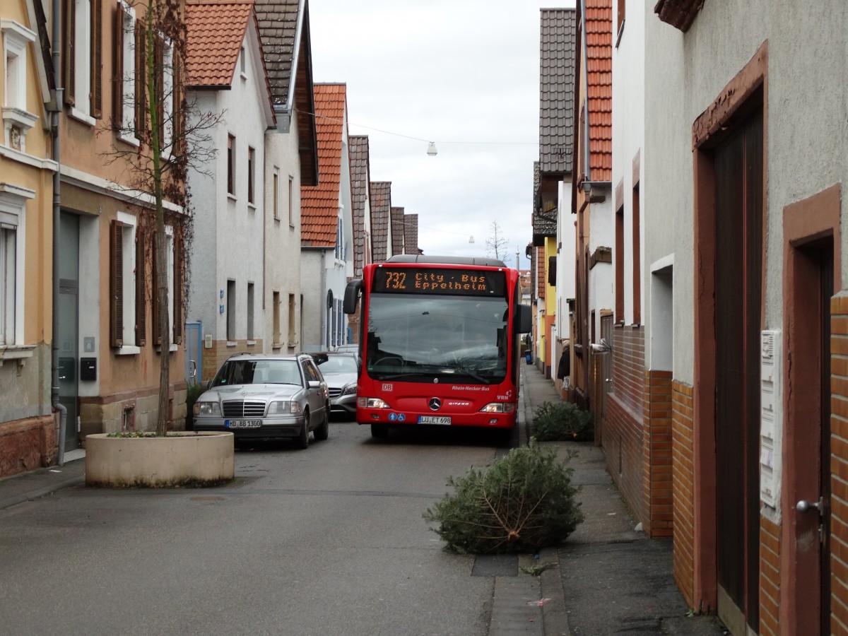 DB Rhein Neckar Bus meets Tannenbaum am 10.01.15 in Heidelberg auf der 732