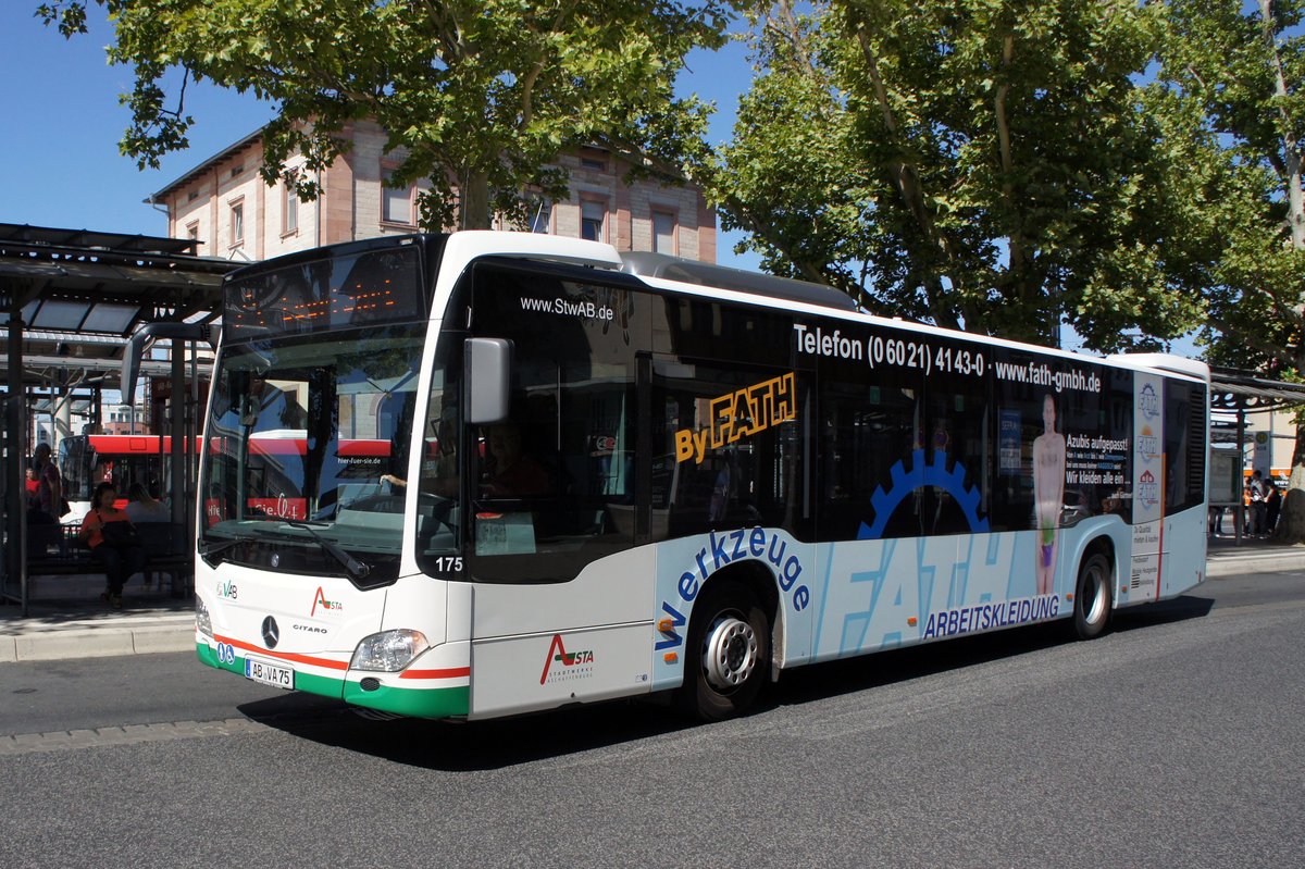 Stadtbus Aschaffenburg / Verkehrsgemeinschaft am Bayerischen Untermain (VAB): Mercedes-Benz Citaro C2 der Stadtwerke Aschaffenburg Verkehrs-GmbH (STWAB), aufgenommen Anfang Juli 2018 am Hauptbahnhof in Aschaffenburg.