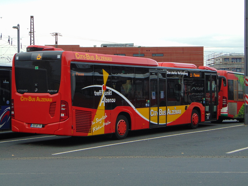 Reisedienst Flaschenträger WF-Reisen / AB-WF 77 / Aschaffenburg, Hauptbahnhof/ROB / Mercedes-Benz O 530 LE C2 hybrid / Aufnahemdatum: 02.10.2020 / Werbung: [City-Bus Alzenau]