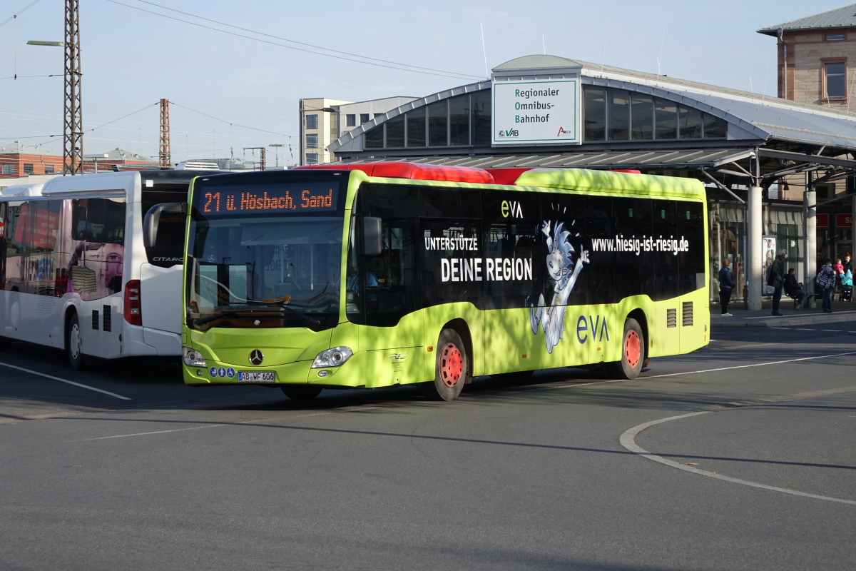 Reisedienst Flaschenträger / AB-WF 606 / Aschaffenburg, Hauptbahnhof/ROB / Mercedes-Benz O 530 LE C2 / Aufnahemdatum: 09.11.2020 / Werbung: EVA Alzenau (www.hiesig-ist-riesig.de)