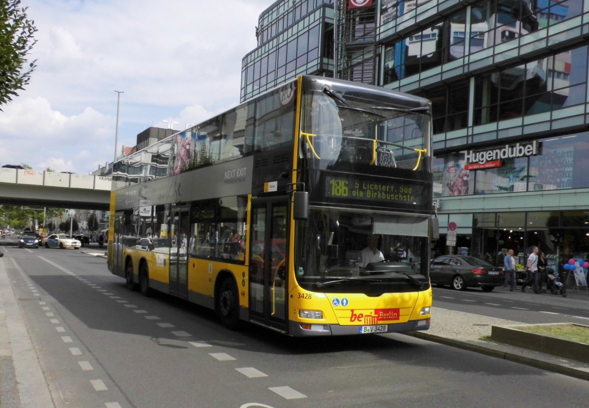 Man Lions City DD - BVG Wagen 3428 als 186 S Lichterfelde Süd am 30.08.14 am U-Bhf. Schloßstraße