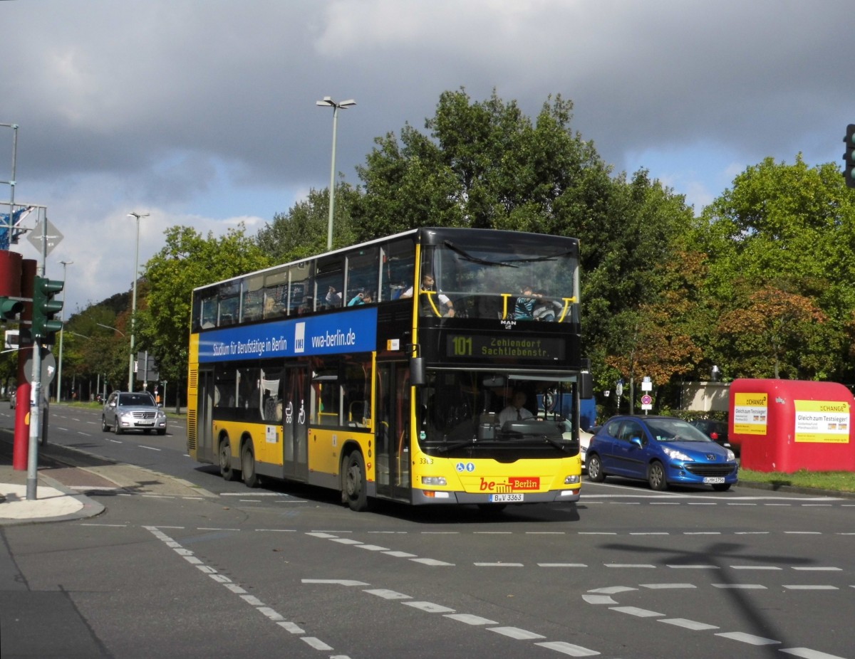 Man Lions City DD - BVG Wagen 3363 als 101 Sachtlebenstr. am 27.09.14 am U-Bhf. Fehrbelliner Platz