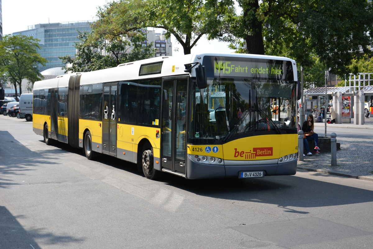 B-V 4126 fährt am 21.08.2014 auf der Linie M45. Aufgenommen wurde ein Solaris Urbino 18, Berlin Zoologischer Garten.