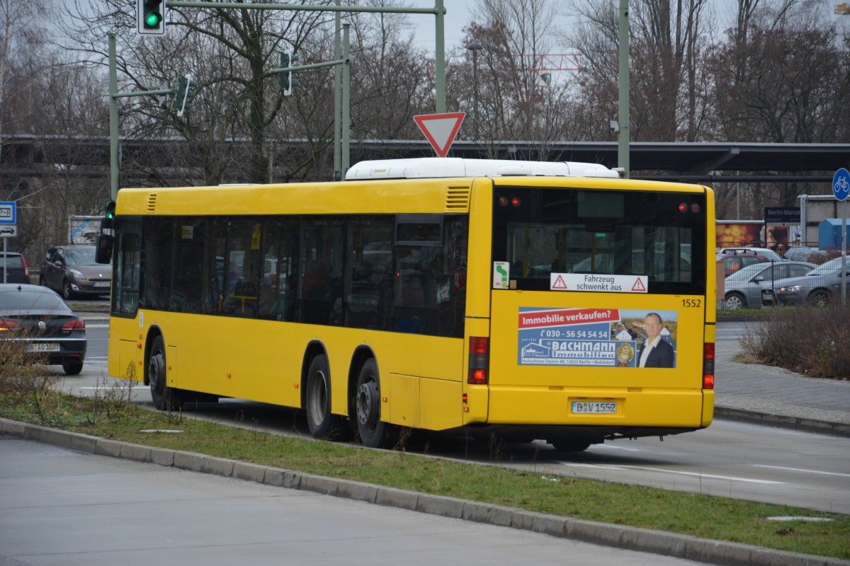 B-V 1552 ist am 17.01.2015 unterwegs auf der Linie 291/191. Aufgenommen am S-Bahnhof Berlin Marzahn.