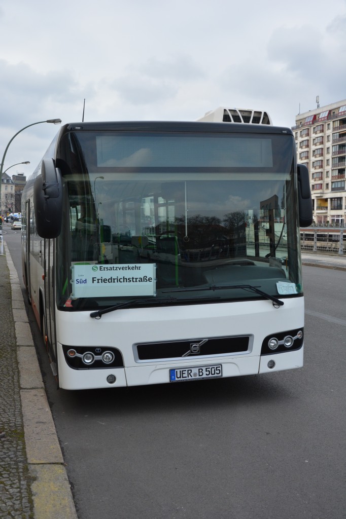 UER-B 505 (Volvo 7700) steht am 13.03.2015 abgestellt an der Friedrichstraße in Berlin und wartet auf sein Einsatz im SEV für die S-Bahn Berlin.