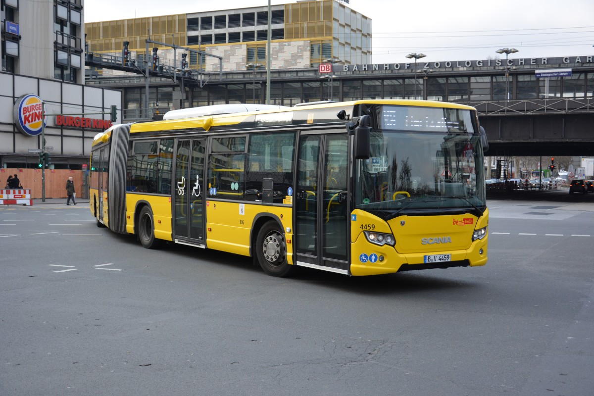Scania Citywide mit dem Kennzeichen B-V 4459 fährt am 13.03.2015 auf der Linie X9 zur Hertzallee. Aufgenommen in Berlin am Hardenbergplatz.
