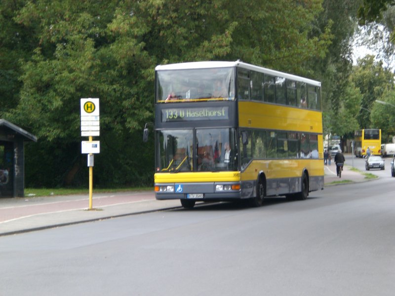 MAN-Doppeldecker auf der Linie 133 nach U-Bahnhof Haselhorst an der Haltestelle Heiligenseestraße/Hennigsdorfer Straße.