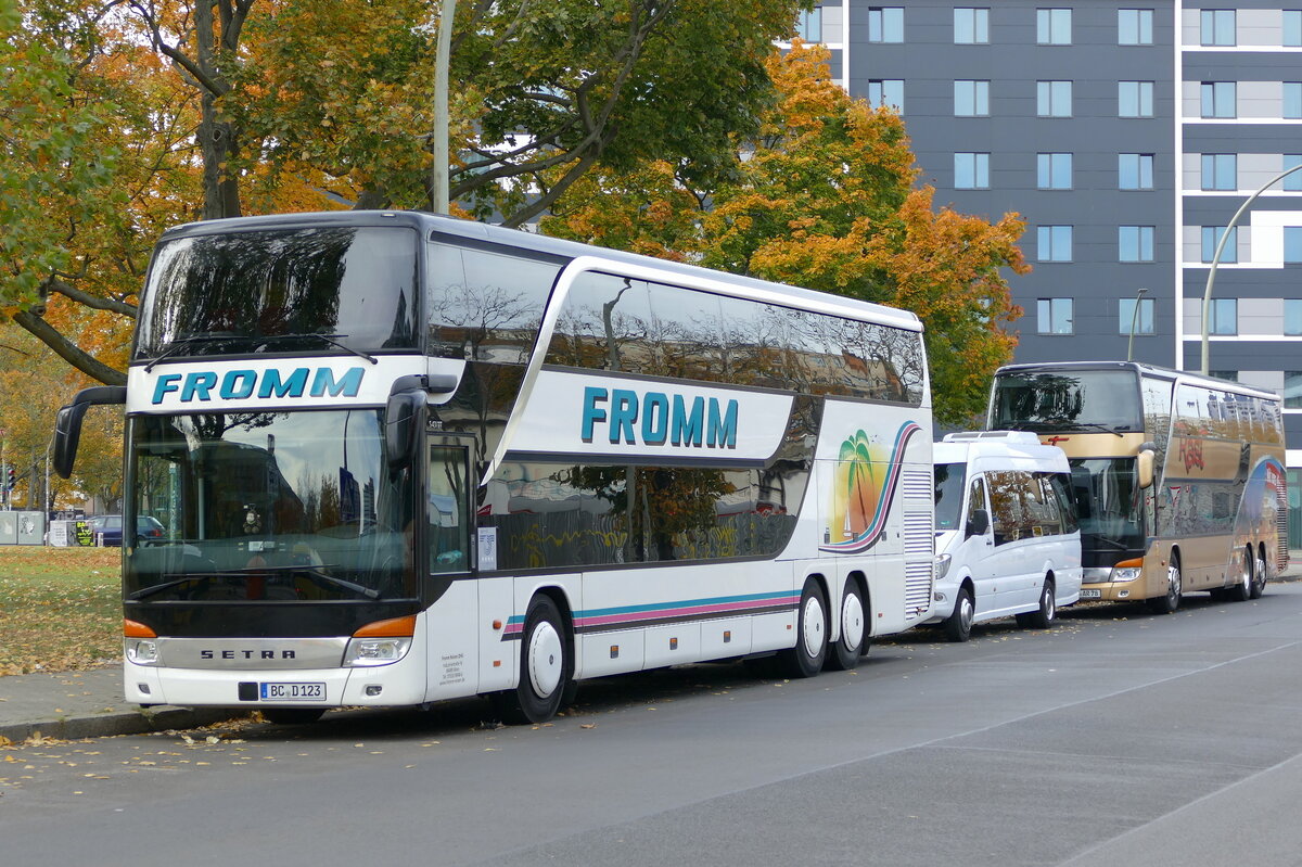 Setra S 431 DT von Fromm-Reisen, Berlin Ostbahnhof im Oktober 2021.