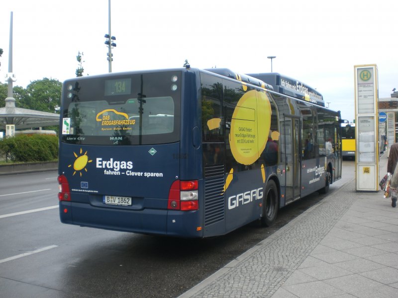 MAN Niederflurbus 3. Generation (Lions City) auf der Linie 134 nach Spandau Friedhof in den Kisseln am S+U Bahnhof Rathaus Spandau.