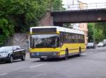 Erdmann's Reisedienst (falsches Apostroph entspricht der Firmenschreibweise) als S3-Ersatzverkehr zwischen Ostkreuz und Karlshorst. Grund für die einmonatige Streckensperrung sind Erneuerungen der Gleisanlagen. Fahrzeug HVL-HZ 104, Blockdammweg, Berlin 22.5.2010