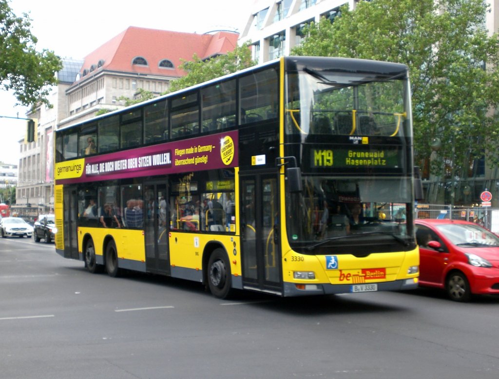MAN Lion's City DD (Doppelstock) auf der Linie M19 nach Grunewald Hagenplatz an der Haltestelle Charlottenburg Europa-Center.