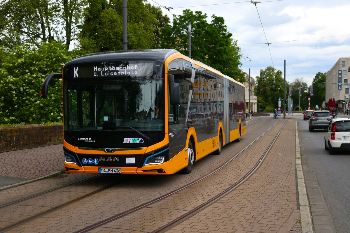 HEAG mobilo MAN Lions City E Wagen 436 am 04.05.24 in Darmstadt Innenstadt