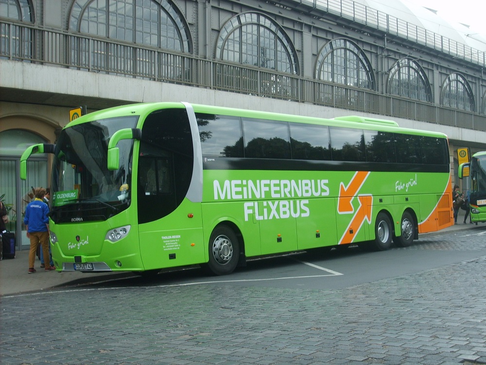 Scania OmniExpress 360 - CLP ET 43 - in Dresden, Bayrische Straße (am Hbf) - am 27-Juli-2015 --> Fahrzeug gehört: Busreisen Tholen, Friesoythe