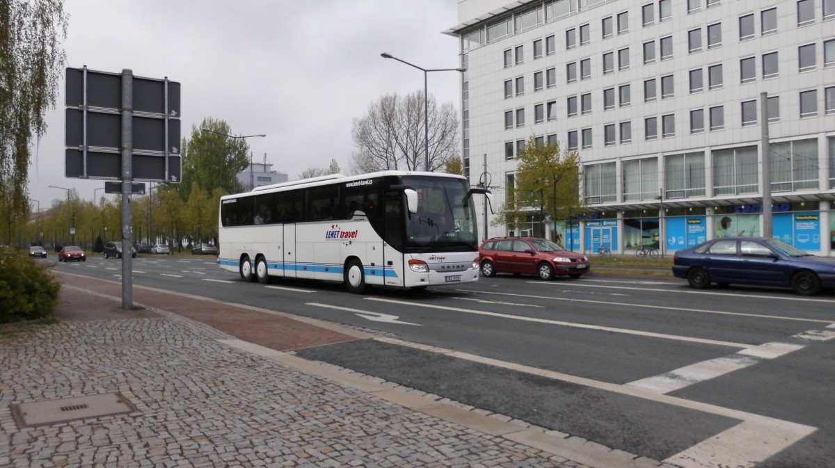 Setra S416 GT-HD von Lenet-Trading Karlovy Vary am 12.04.2013 vor dem Dresdner Hauptbahnhof