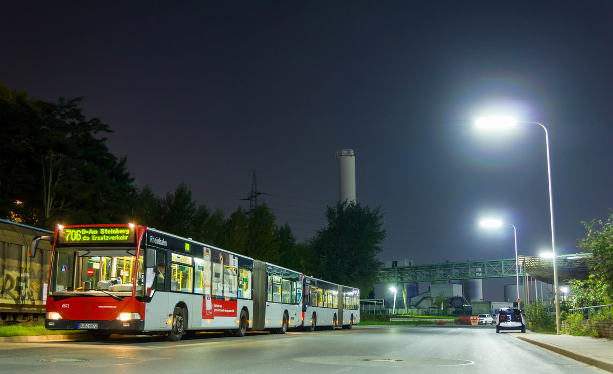 Am 24. September 2017 konnte Wagen 6872 der Rheinbahn im Zuge des Schienenersatzverkehrs für die Linie 706 an der provisorischen Pausenhaltestelle hinter dem S-Bahnhof in Düsseldorf-Hamm abgelichtet werden.