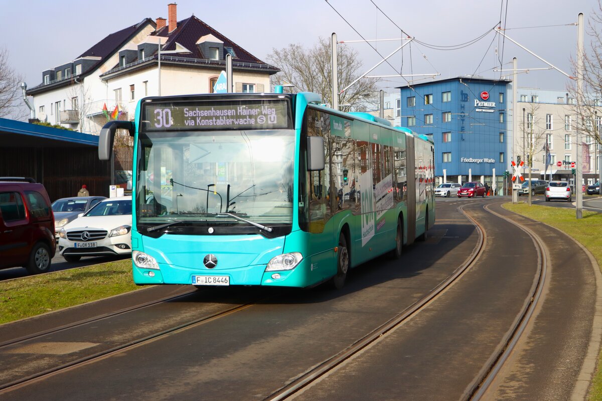 Transdev Rhein Main Mercedes Benz Citaro K Wagen 4216 am 21.12.20 in Frankfurt am Main Nordwestzentrum