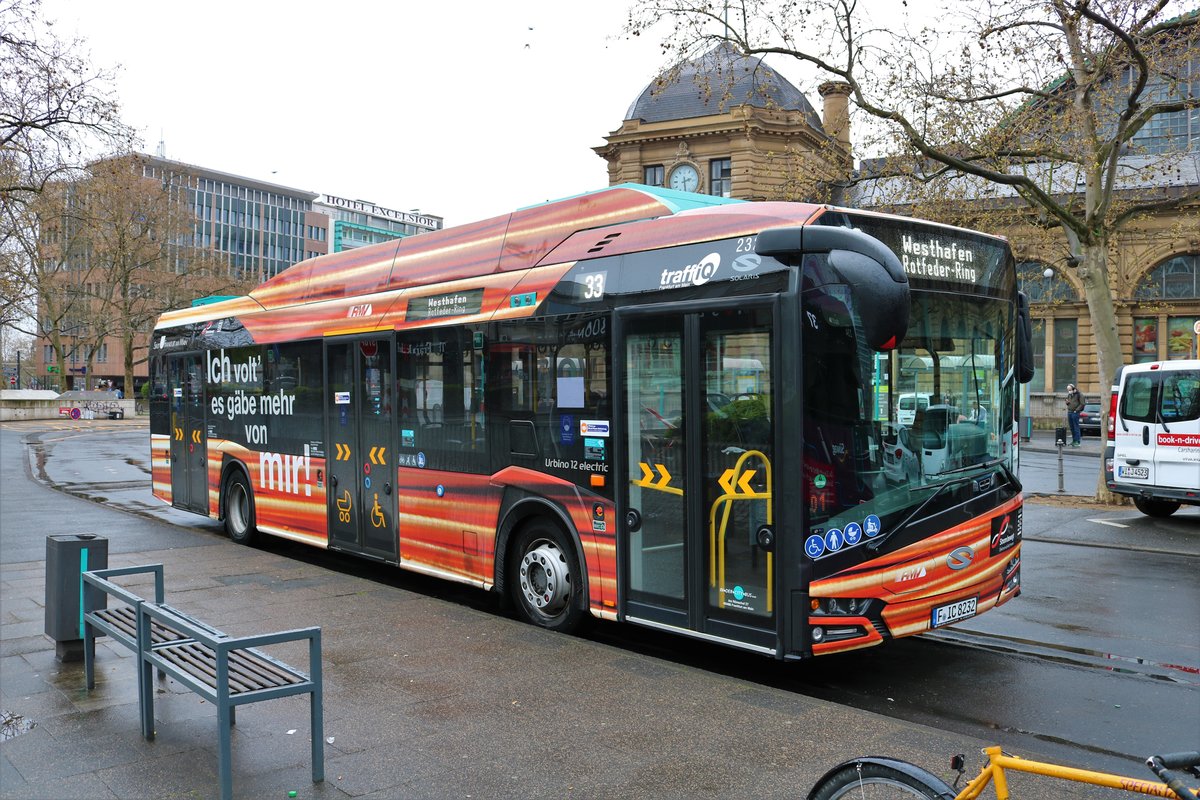 ICB Solaris Electric Wagen 232 am 10.04.21 in Frankfurt am Main