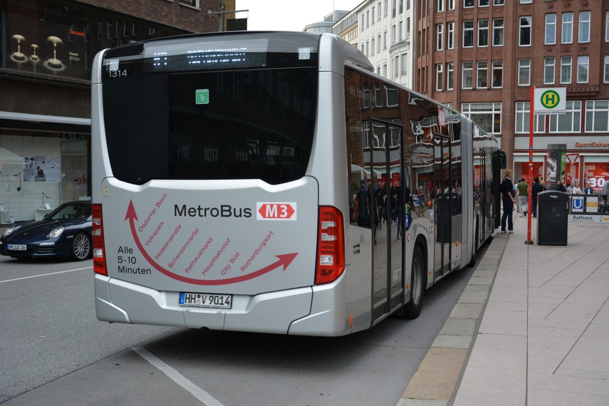 HH-V 9014 fährt am 11.07.2015 auf der Linie M3. Aufgenommen wurde ein Mercedes Benz Citaro 2. Generation / VHH / Hamburg Rathausmarkt - Petrikirche.