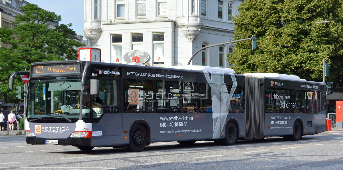 Hamburger Hochbahn AG (HHA) mit einem MB O 530 G „Facelift“ Wagen 7826 (Bj.2008) Linie 109 am 25.06.19 Nähe Hamburg Hbf.