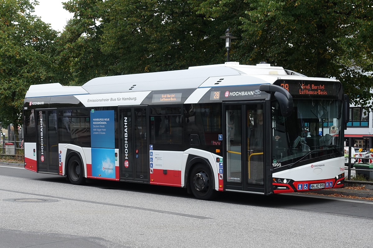 HHA 1995 (HH-XE 995) am 10.9.2025, U-Wandsbek Markt, Solaris New Urbino Elektric. 12, 3-t, 3-türig, EZ 11.2019 /