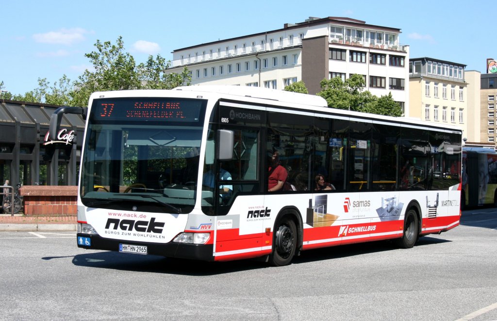 Hochbahn 6905 (HH HN 2965) mit Werbung für Nack.