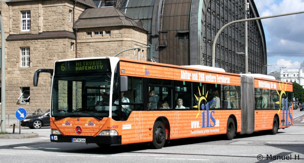 Hochbahn 7023 (HH YN 1464) mit Werbung für ILS.