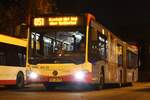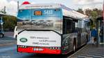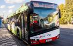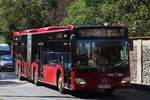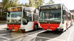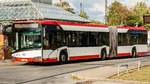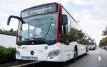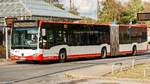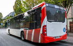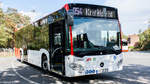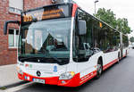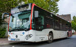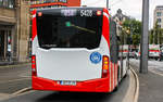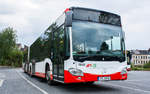 Ein Mercedes Benz O530G der neusten Generation von der SWK (Stadtwerke Krefeld) mit der Wagennummer 5696 (WKR-Werbung) am Krefelder Hauptbahnhof (Süd). | September 2018