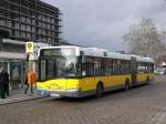 Magdeburger Verkehrsbetriebe GmbH & Co. KG (MVB) mit einem Diesel-Gelenkbusse vom Hersteller Solaris des Typs „Urbino 18“ (Nr.3616) als Linie 69 Richtung Bahnhof Magdeburg Neustadt.