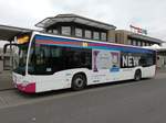 Ein Mercedes Benz O530 Facelift von der NEW'MöBus mit der Wagennummer 0906 (Siegers-Werbung & YoungTicketPLUS-Werbung) am Mönchengladbacher Flughafen. | Februar 2017