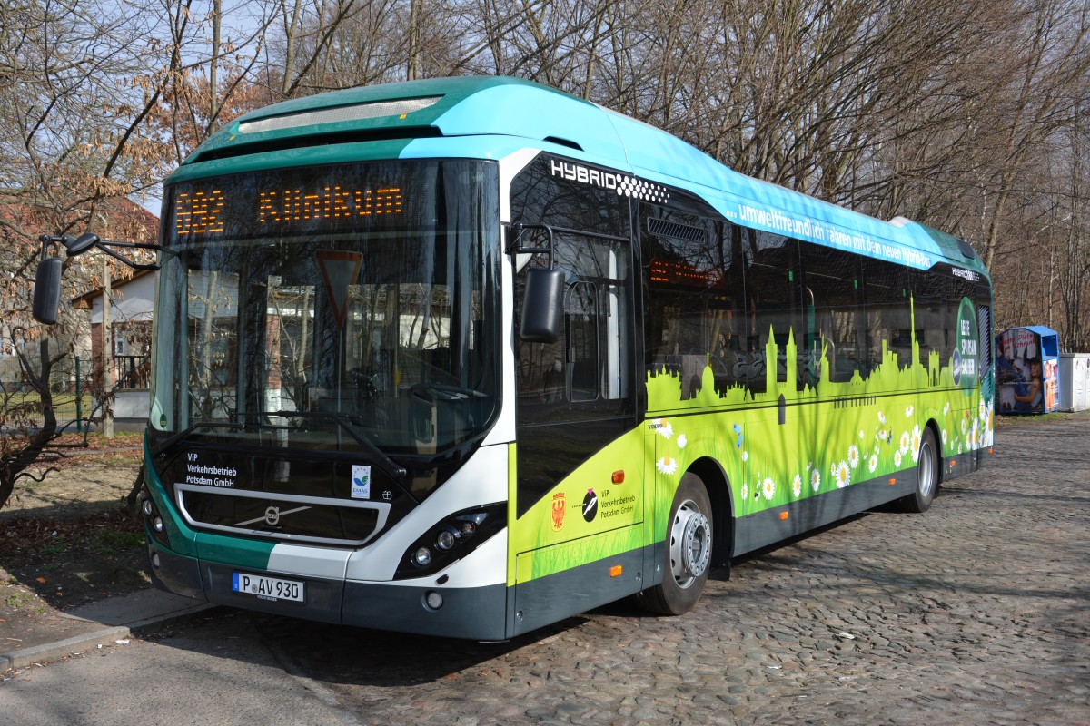 Der neuste Bus bei der VIP (P-AV 930). Mehr als 300 000ࢬ kostete dieser Bus (Quelle: MAZ) der nun Potsdam leise, sparsam und sauber im ÖPNV unterstützt. Aufgenommen am 02.03.2014.