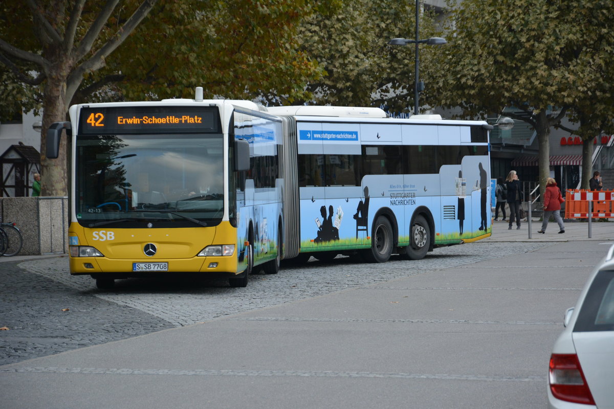 S-SB 7708 fährt am 19.10.2015 auf der Linie 42. Aufgenommen wurde ein Mercedes Benz CapaCity / Stuttgart Schlossplatz.