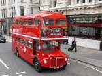 Historischer Bus (Kennzeichen 776 DYE) am 8.4.2012 auf der Linie 9 nahe dem Trafalgar Square. Baujahr 1963, Typ AEC Routemaster. Was für ein Schmuckstück!