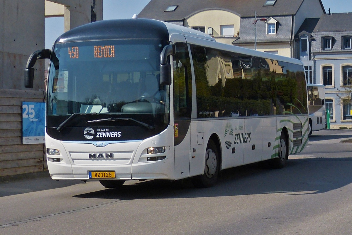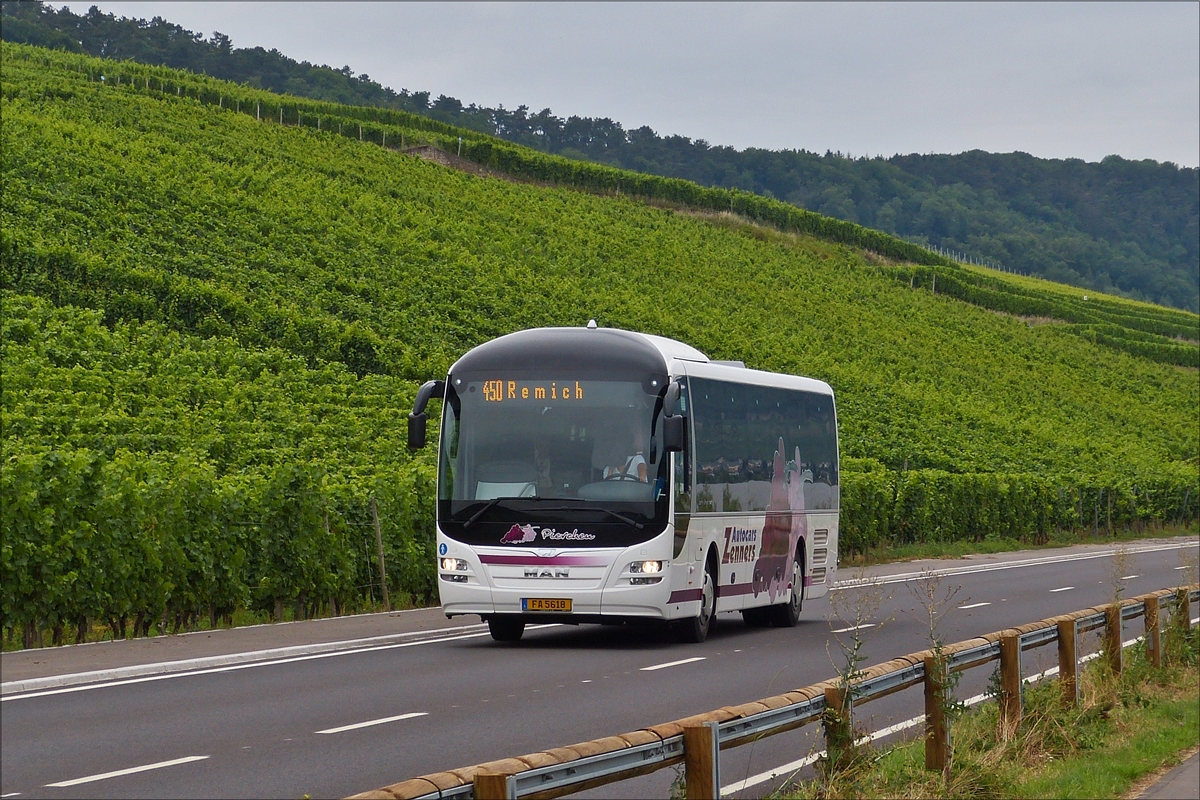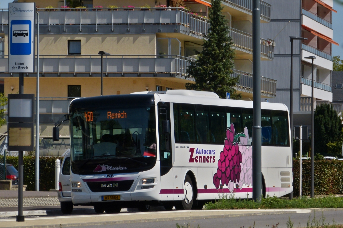 WX 5864, MAN Lion’s Intercity von Autocars Zenners, in den Straßen von Grevenmacher unterwegs. 12.08.2018
