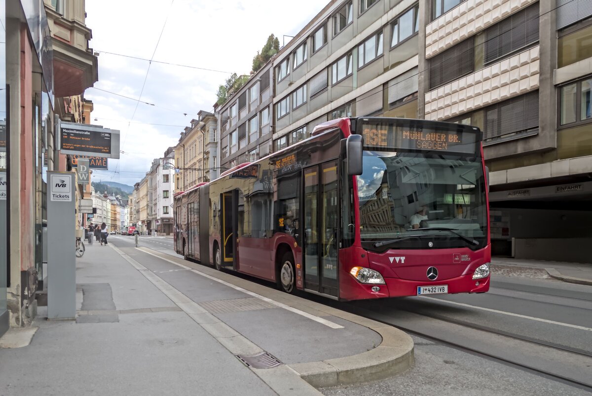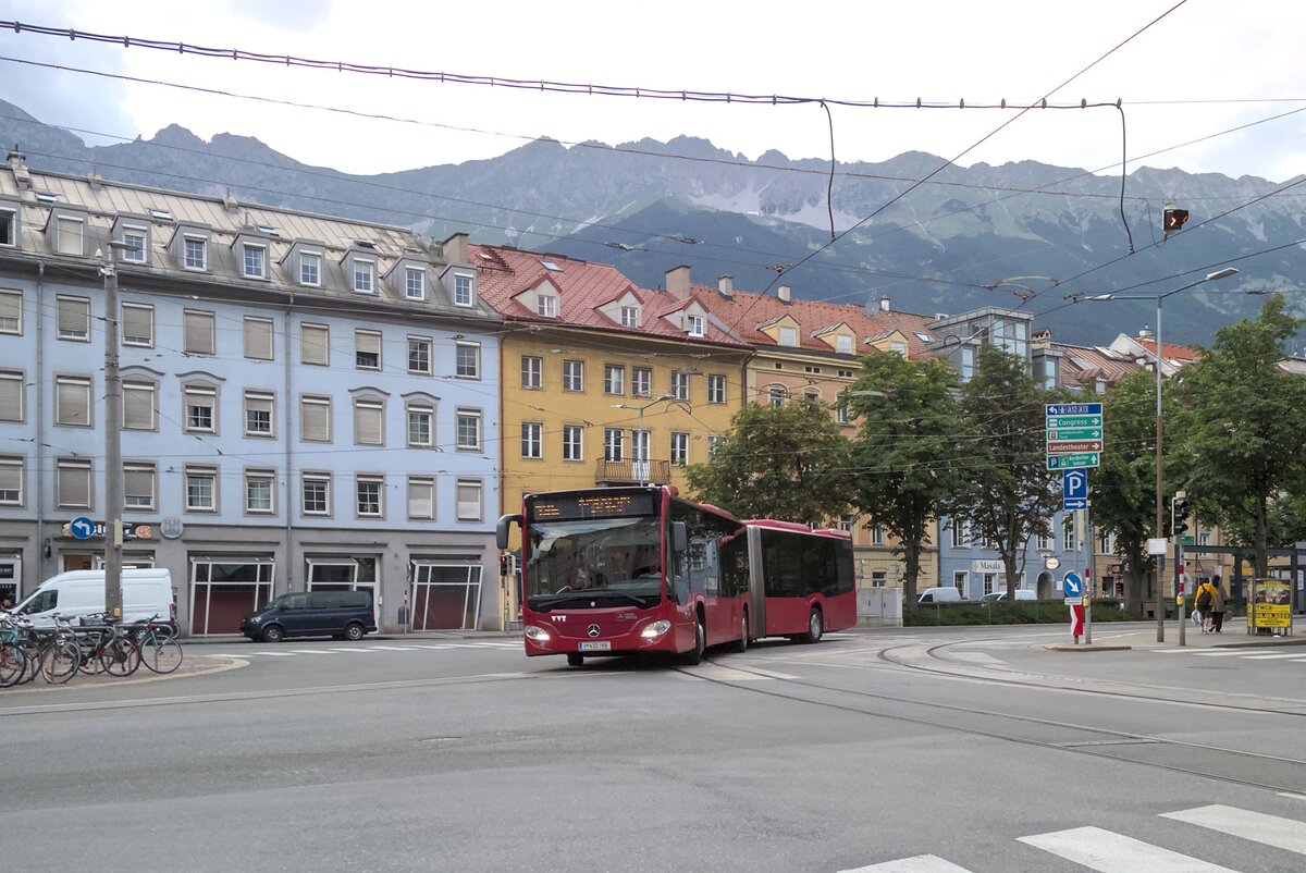 Mercedes-Benz Citaro 2. Generation der Innsbrucker Verkehrsbetriebe (Bus Nr. 432) als Schienenersatzverkehr für die Straßenbahnlinie 1 in Innsbruck, Innrain. Aufgenommen 10.7.2025.