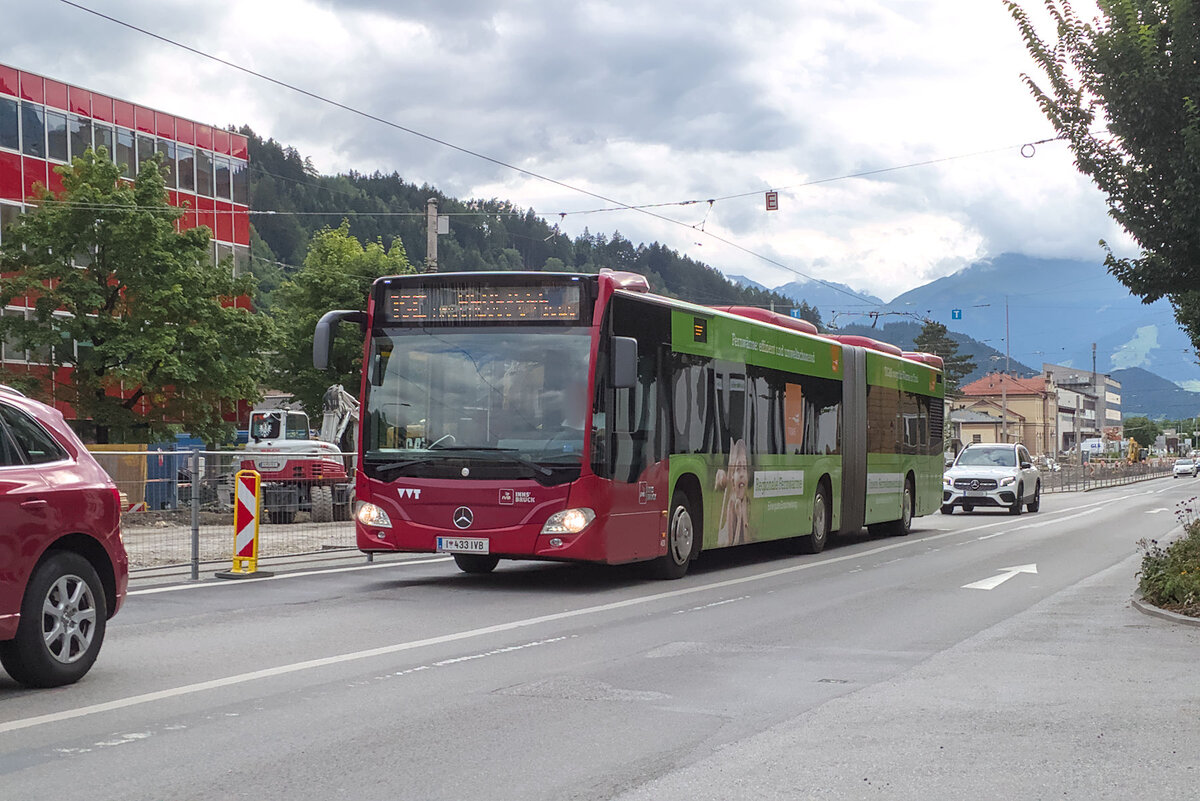 Mercedes-Benz Citaro 2. Generation der Innsbrucker Verkehrsbetriebe (Bus Nr. 433) als Schienenersatzverkehr für die Straßenbahnlinie 1 in Innsbruck, Anton-Melzer-Straße. Aufgenommen 9.7.2025.