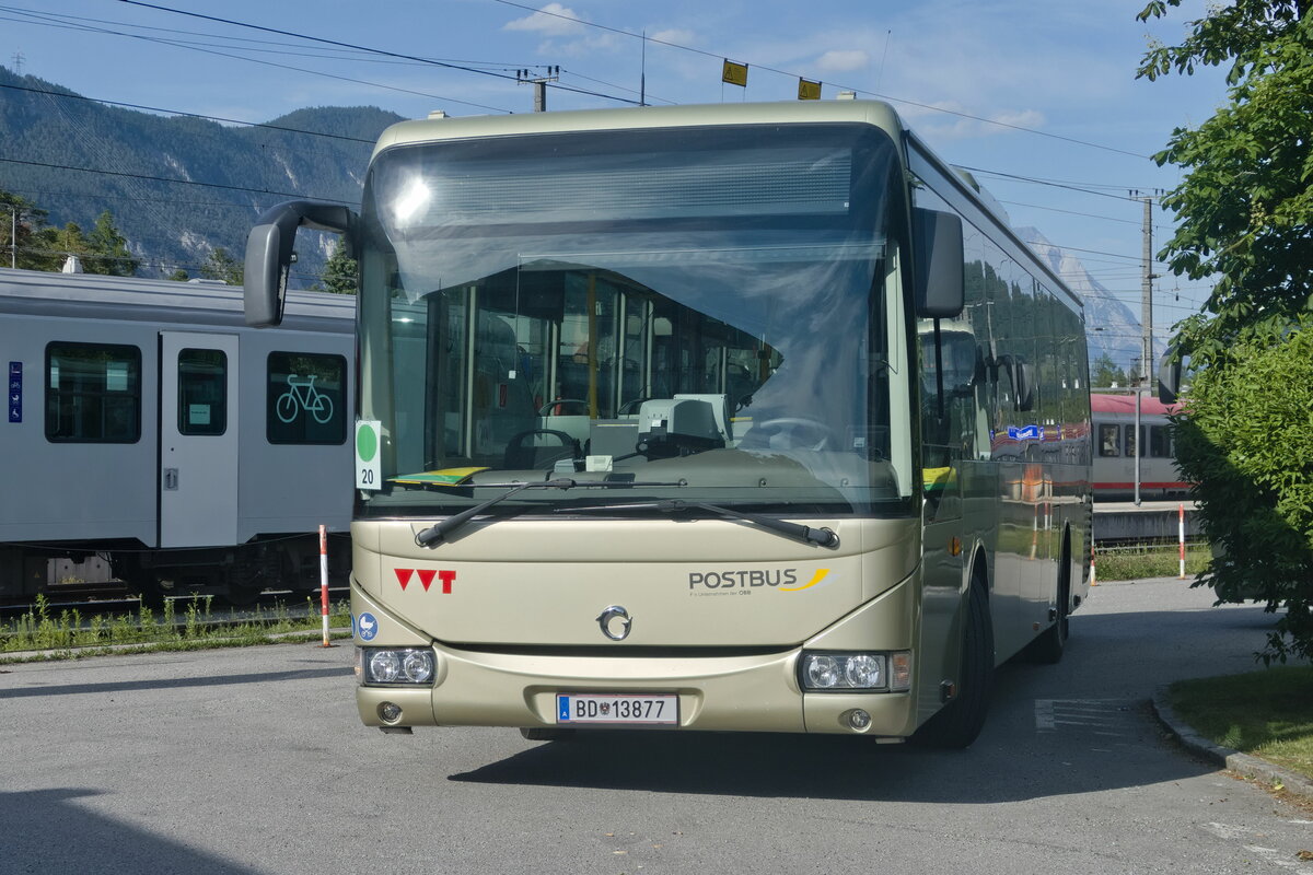 Iveco-Irisbus Crossway von Postbus (BD-13877) abgestellt am Bahnhof Ötztal. Aufgenommen 15.6.2021.
