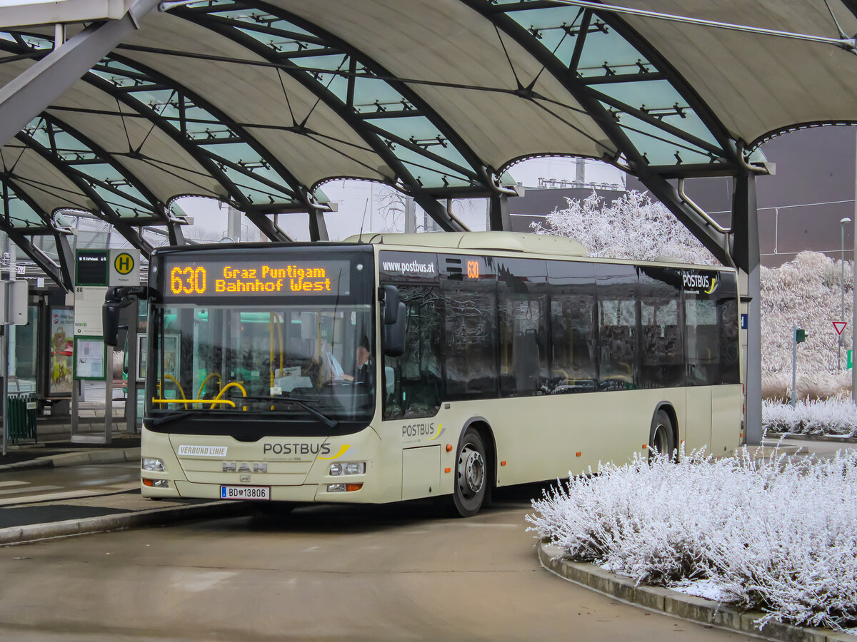 Graz. Der BD 13806 wartet hier am 25.11.2020 seine Stehzeit in Puntigam ab.
