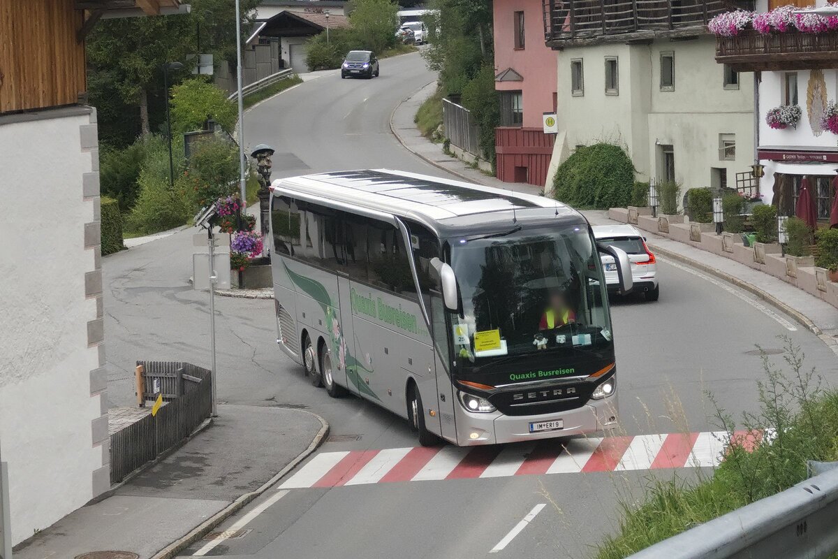 Setra S 500er Serie von Quaxis Busreisen als Schienenersatzverkehr in Leithen (Reith b. Seefeld). Aufgenommen 26.7.2022.