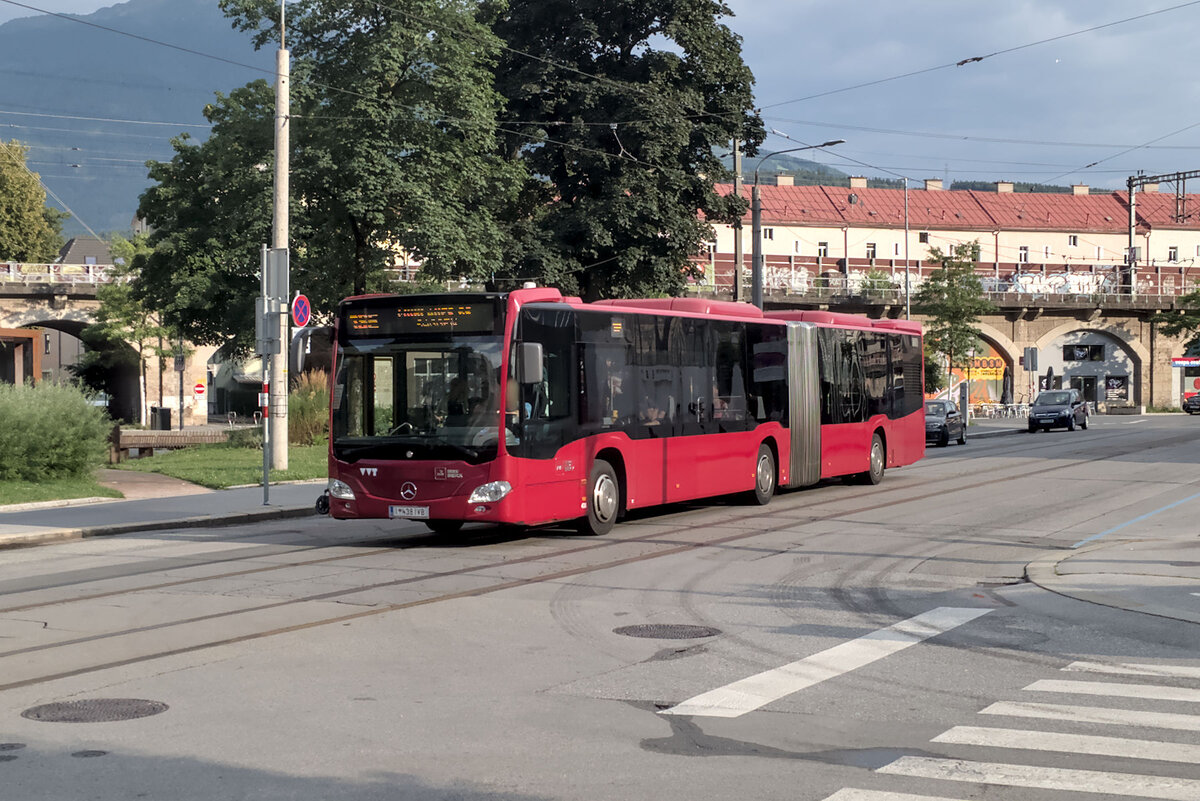 Mercedes-Benz Citaro 2. Generation der Innsbrucker Verkehrsbetriebe (Bus Nr. 438) als Schienenersatzverkehr für die Straßenbahnlinie 1 in Innsbruck, Claudiastraße. Aufgenommen 11.7.2025.