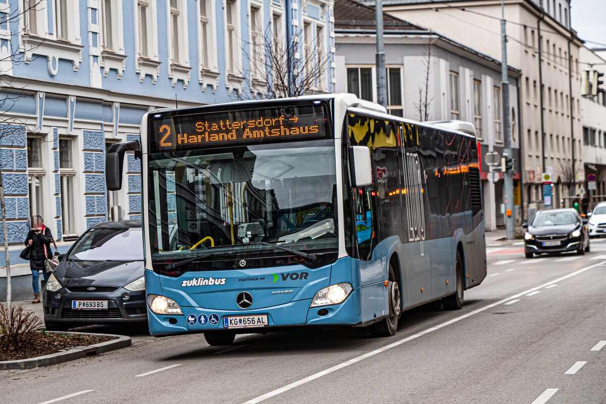 21.2.2024: Zuklinbus KG 656 AL als Lup Linie 2 nach Harland Amtshaus erreicht den Hbf St.Pölten