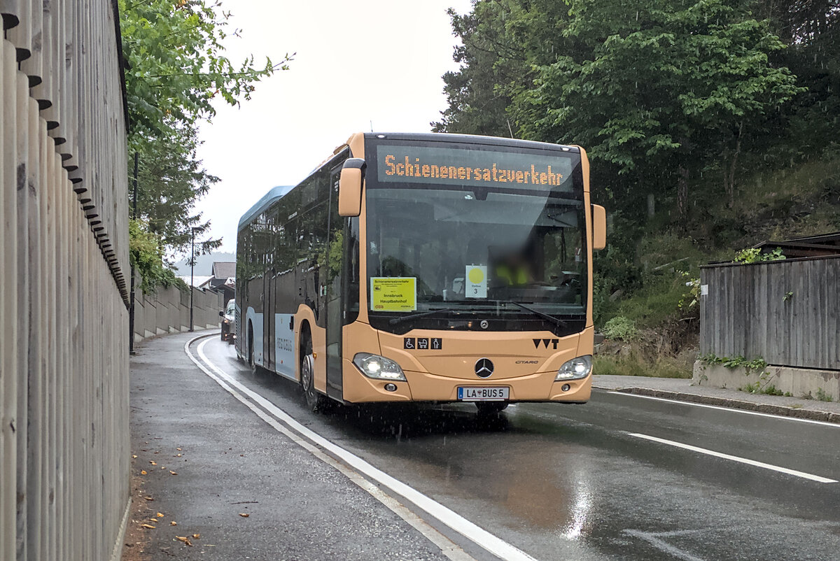 Mercedes-Benz Citaro 2. Generation (LA-BUS 5) als Schienenersatzverkehr für die Mittenwaldbahn in Reith bei Seefeld, Ortsteil Leithen. Aufgenommen 15.7.2025. stbtram
