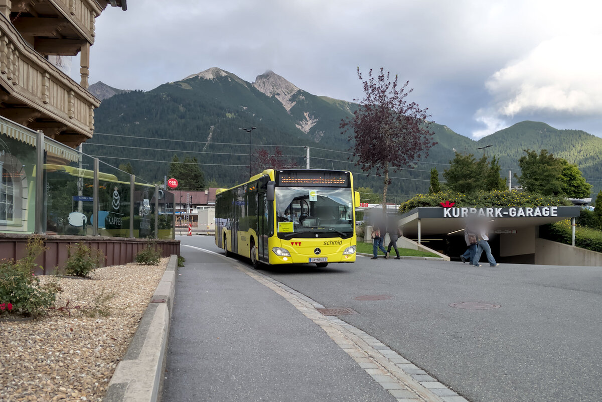 Mercedes-Benz Citaro 2. Generation von Schmid (LA-NBUS1) als Schienenersatzverkehr für die Mittenwaldbahn in Seefeld in Tirol, Andreas-Hofer-Straße. Aufgenommen 29.7.2025. stbtram