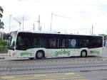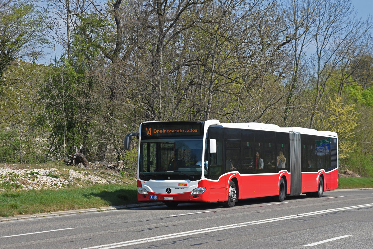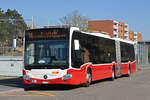 Wärend der Grossbaustelle zwischen Muttenz und Pratteln werden Busse aus Wien als Tram Ersatz auf der Linie 14 eingesetzt. Hier fährt der Mercedes Citaro 97 Richtung Endhaltestelle an der Rothausstrasse. Die Aufnahme stammt vom 09.04.2020.